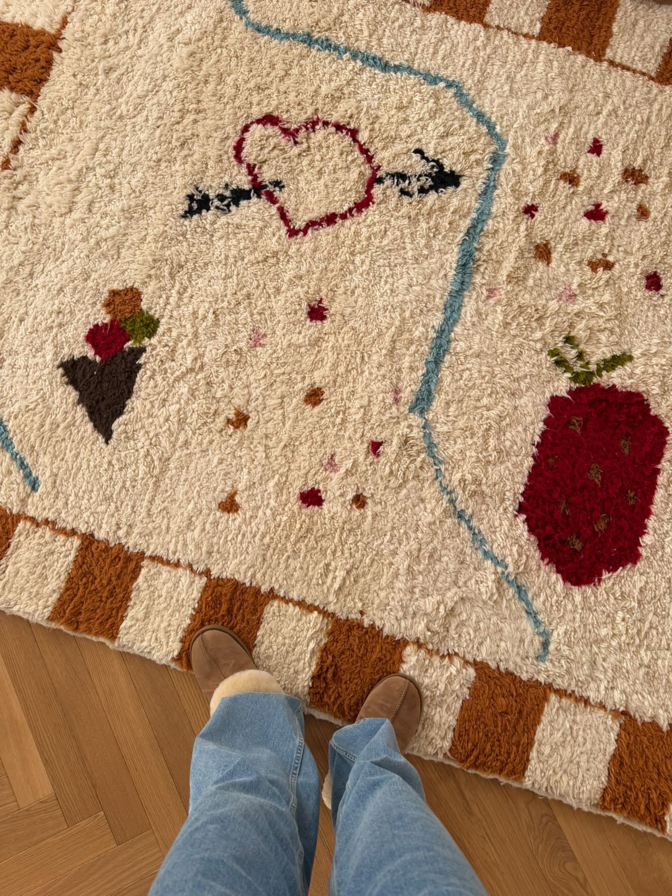 Manchmal entsteht etwas Besonderes, wenn zwei Welten aufeinandertreffen – feine Linien, gezeichnet aus Gefühl, und das jahrhundertealte Handwerk marokkanischer Knüpferinnen.