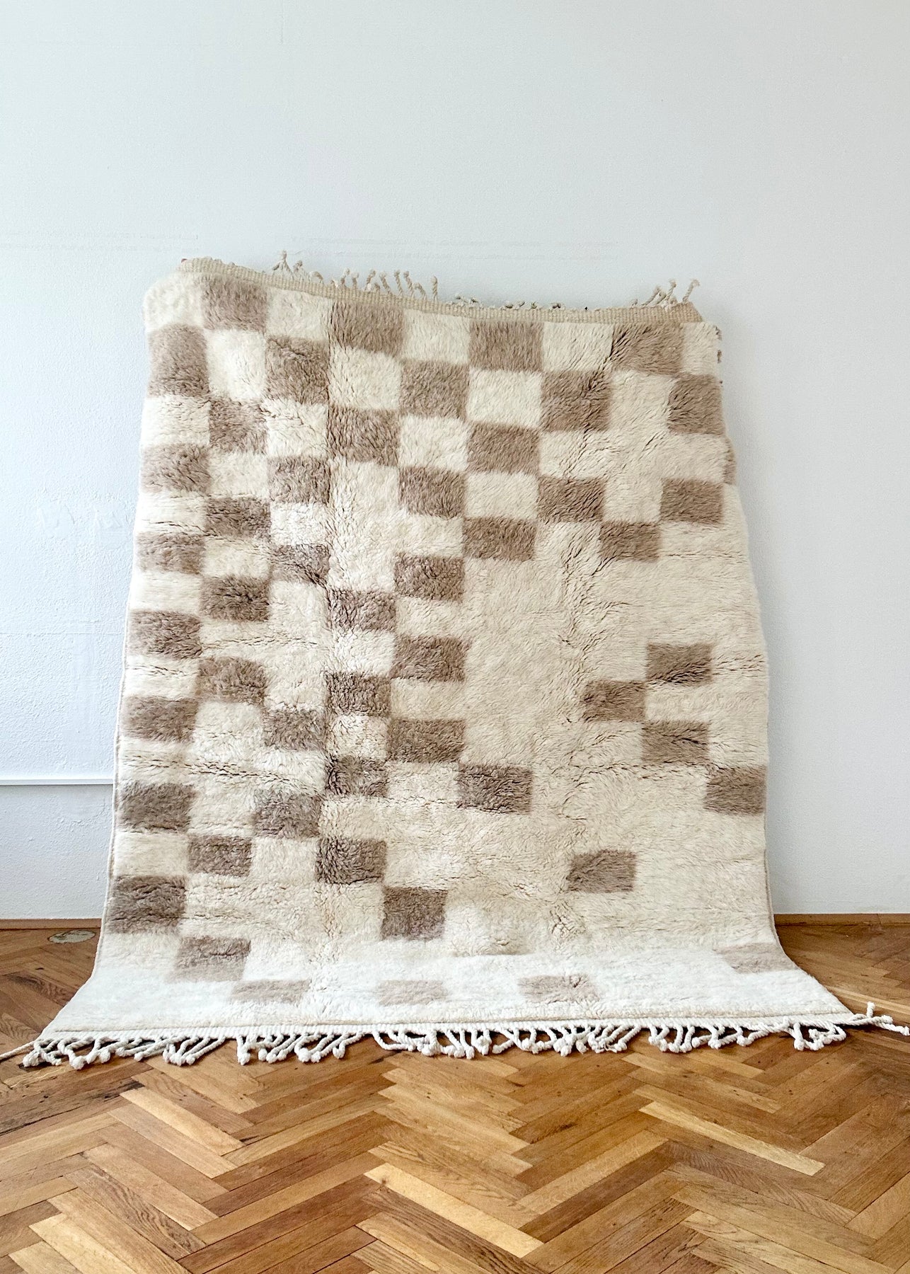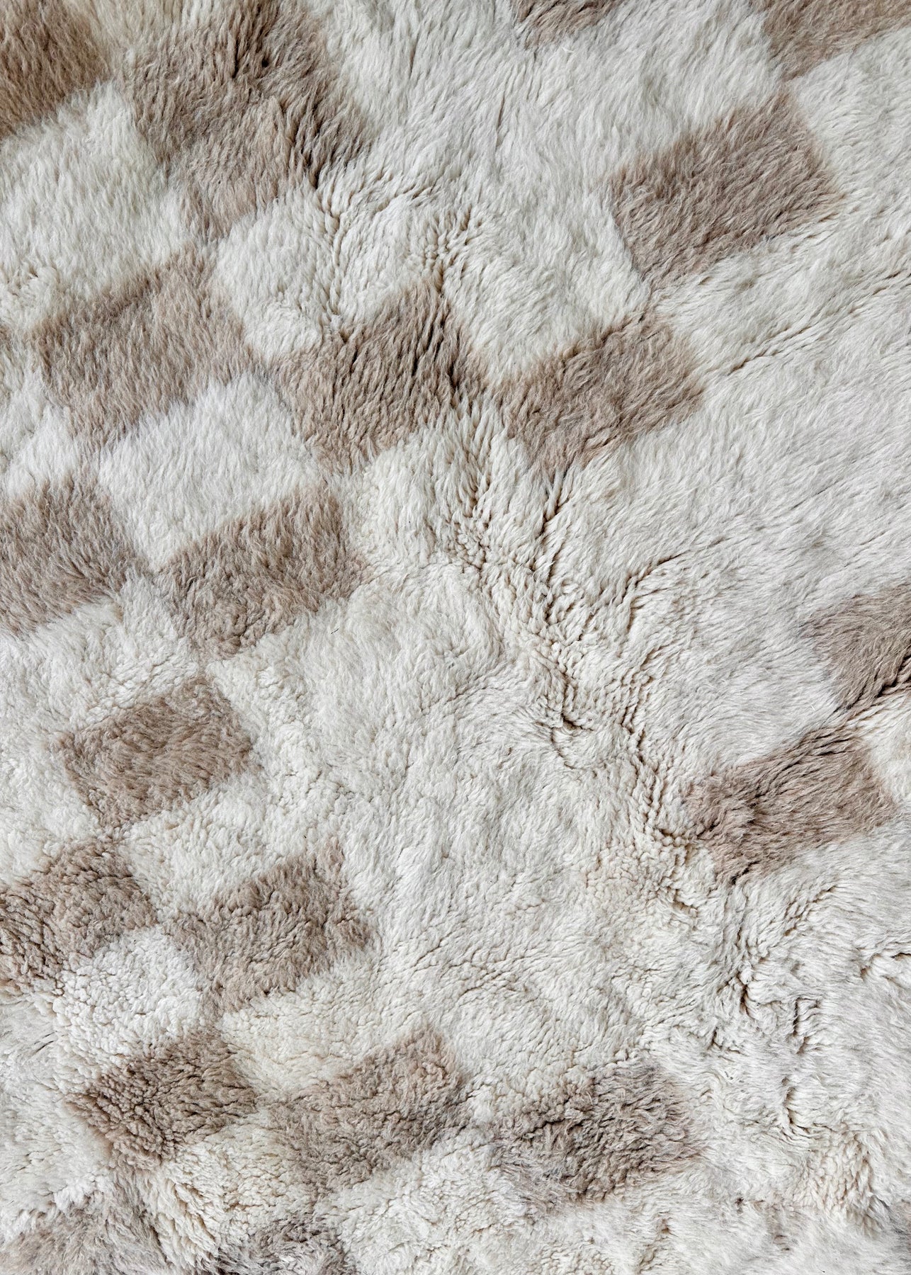 Dieser edle Beni Mrirt Berber Teppich vereint traditionelle marokkanische Handwerkskunst mit einer besonders harmonischen, modernen Farbwelt. Auf einem sanften wollweißen Grund entfaltet sich ein feines Muster in warmen Beigetönen, das dem Teppich Tiefe verleiht, ohne sich aufzudrängen. Das Design wirkt ruhig, hochwertig und gleichzeitig lebendig – perfekt für stilvolle, natürliche Wohnkonzepte.