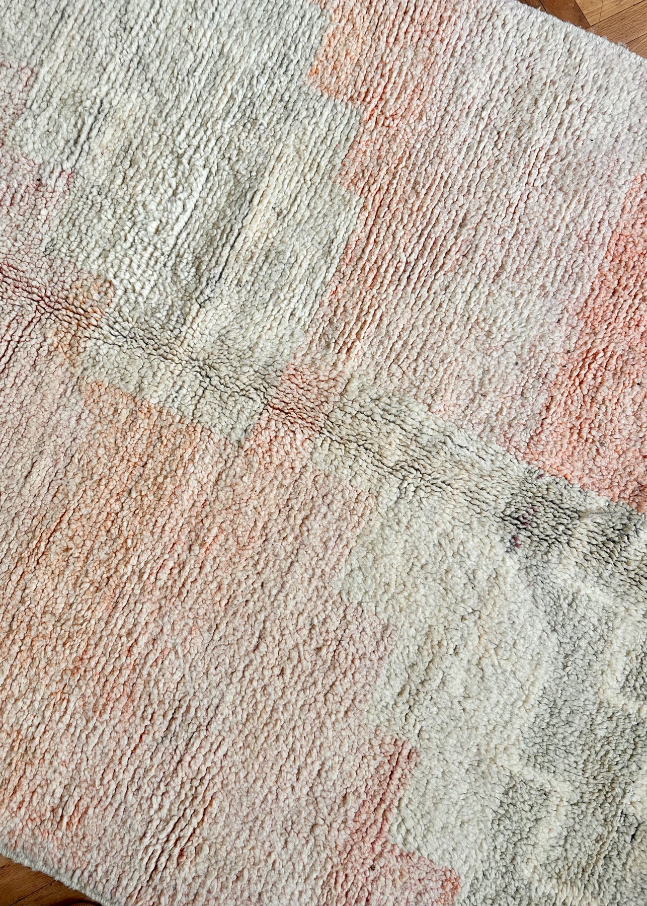 Dieser einzigartige Vintage Berber Teppich bringt den authentischen Charme marokkanischer Handwerkskunst direkt in dein Zuhause. Gefertigt aus 100 % natürlicher Wolle überzeugt er mit seiner weichen Haptik, langlebigen Qualität und dem unverwechselbaren Charakter, den nur echte Handarbeit schafft.