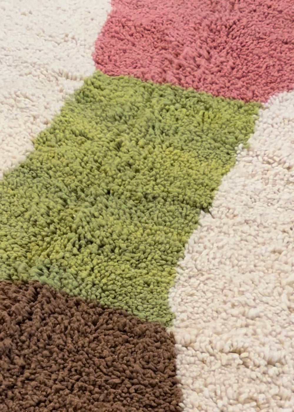 Handmade by Amazigh women in Morocco's Atlas Mountains, this Berber rug features a classic Beni Ouarain design. Its pattern is depicted in beautiful, complementary colors. This gives the rug a very special look. Made from 100% local wool, the rug not only feels cozy but is also quite robust.