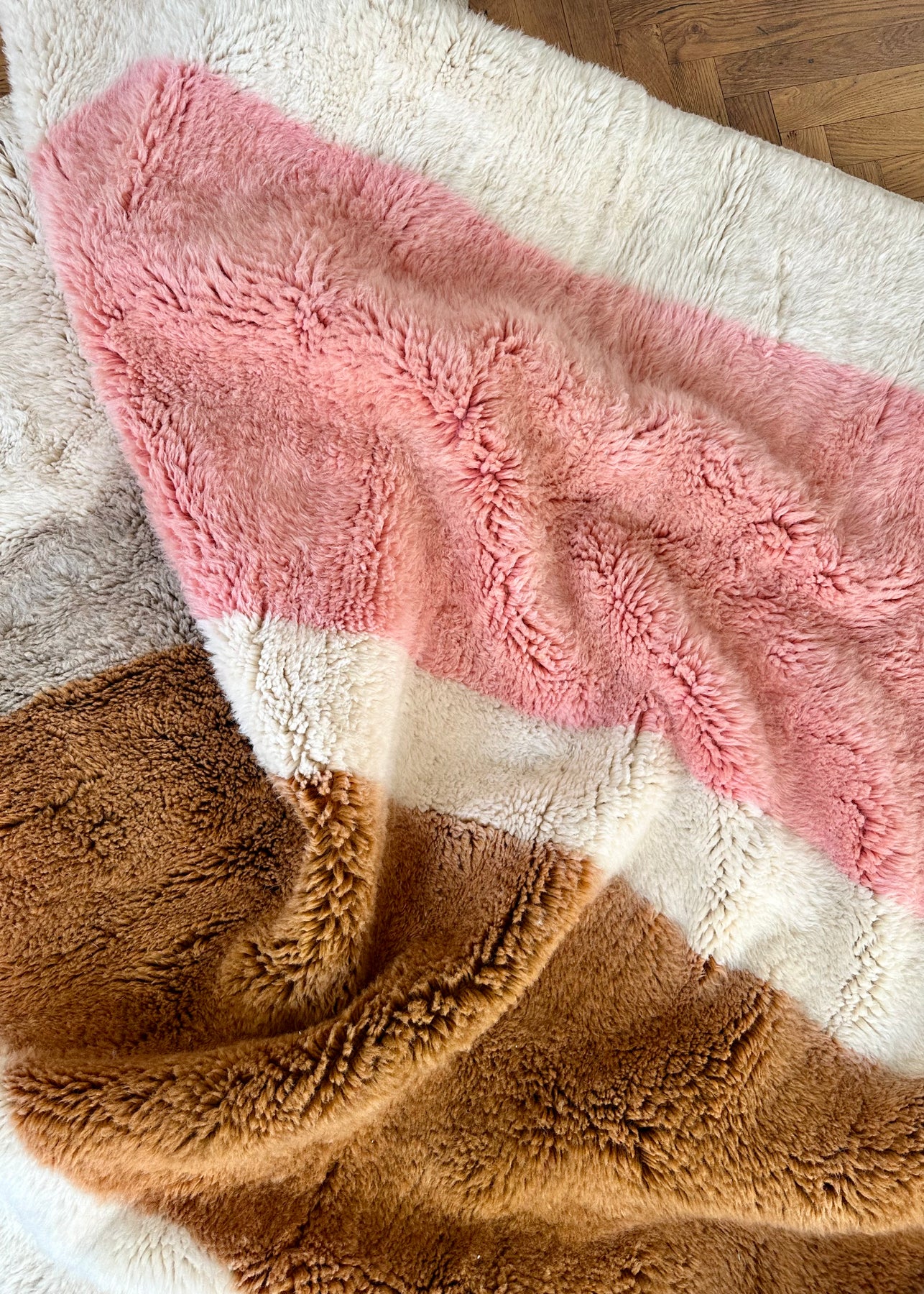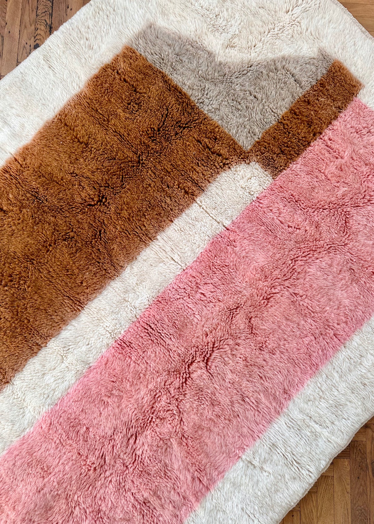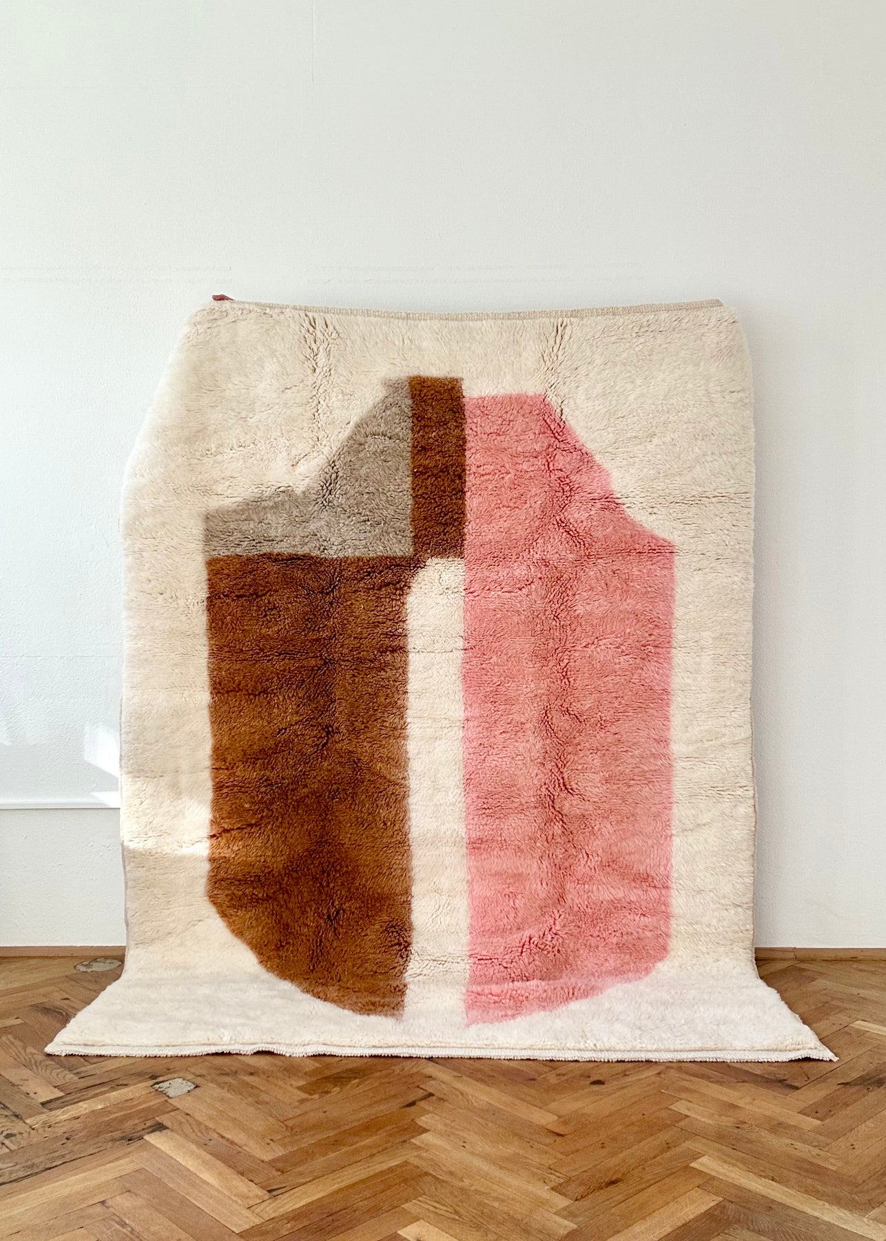 Dieser in Marokko von Amazigh-Frauen handgeknüpfte Beni Mrirt Berberteppich zeigt ein abstraktes Beni Mrirt-Muster bestehend aus einem kräftigen Rosa, warmen Braun und einem sanften Grau. Gefertigt aus hochwertiger, reiner Schurwolle, bietet dieser Teppich nicht nur eine außergewöhnliche Langlebigkeit, sondern auch ein weiches und warmes Gefühl unter den Füßen – ideal für Wohnzimmer, Schlafzimmer oder jeden Raum, der einen Hauch von natürlicher Eleganz verdient. Perfekt für alle, die natürliche Materialien und kunstvolle Handarbeit schätzen.