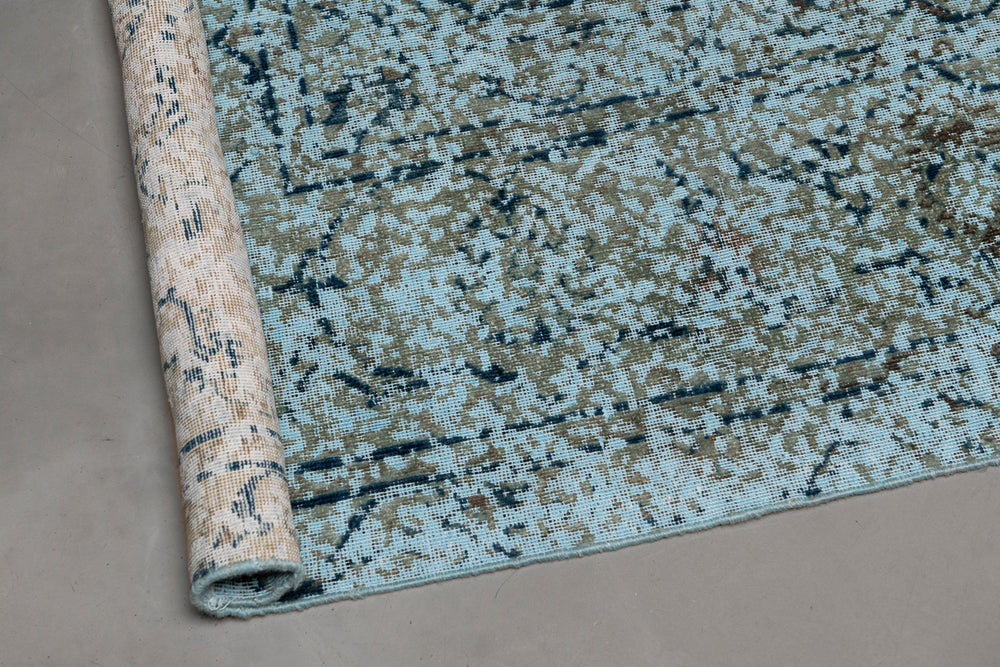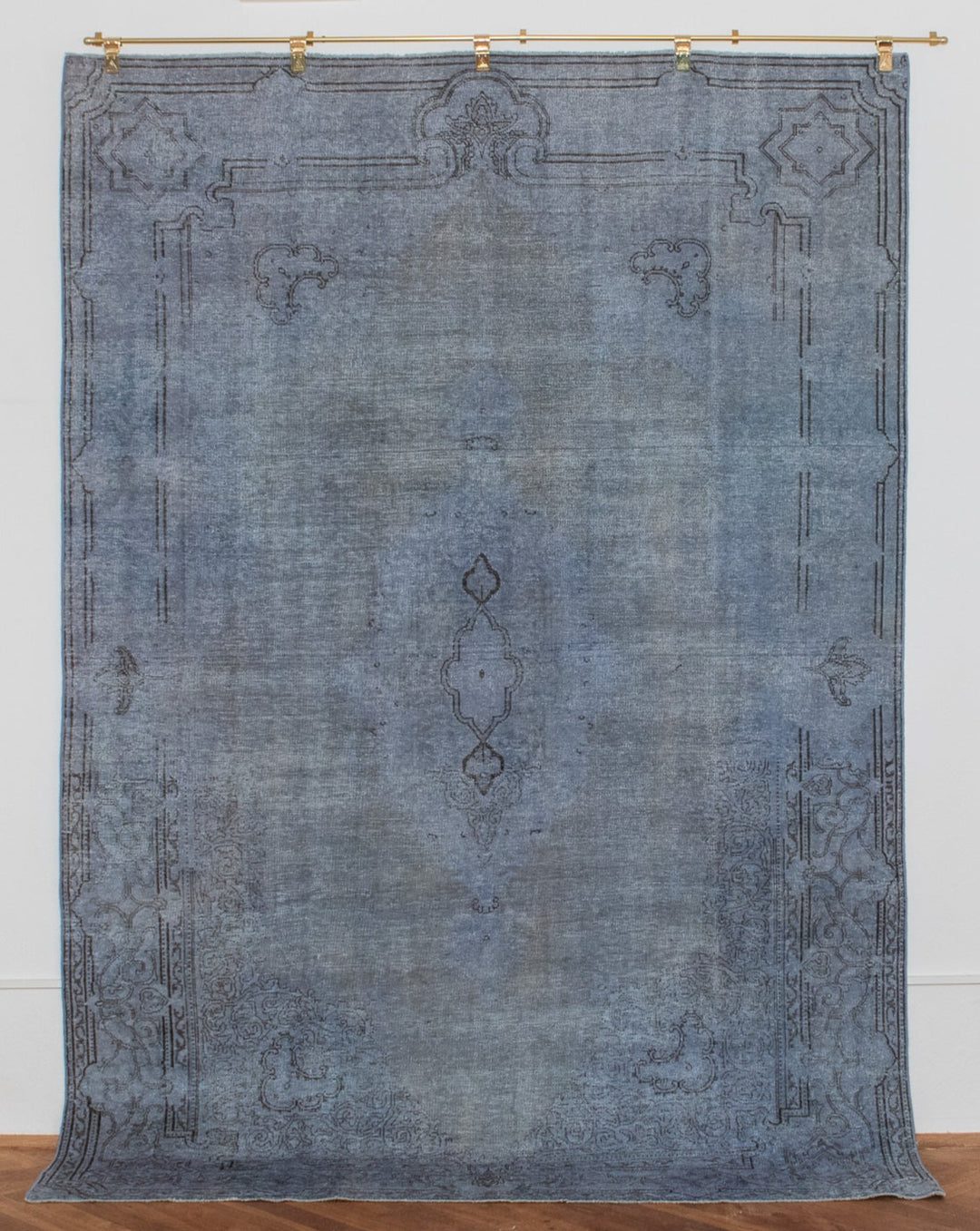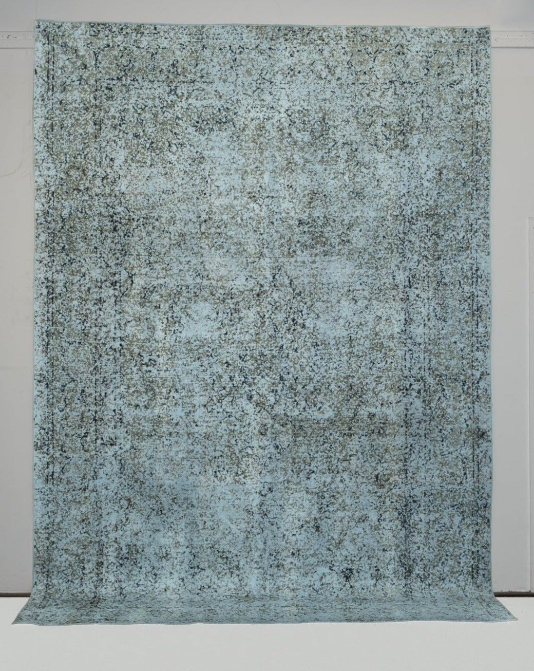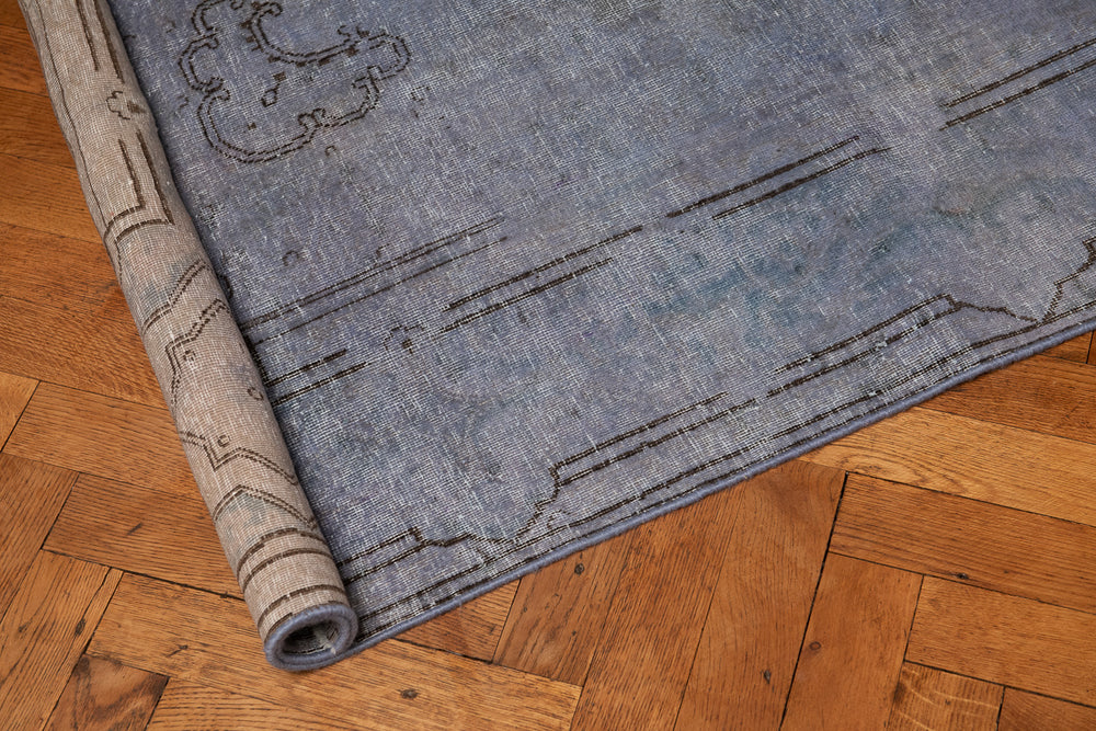 By vintage carpets we mean old oriental carpets, which are given a modern look by a special process. The combination of past and present is typical for articles by THE KNOTS from Berlin. Vintage looks will continue to define home trends in the future. A vintage carpet is a contemporary design object where traditional craftsmanship meets interior design culture in 2022. Characteristic for vintage carpets by THE KNOTS are their homogeneous coloring in shades such as gray, blue, purple, yellow, or beige. Black is also modern for carpets. In contrast, accentuating colors such as pink, green or turquoise can create special moments in your living room. Above all, it is the interplay of colors and shapes that makes vintage carpets so special. Today's adaptations of old oriental carpets by our carpet label from Berlin pay special attention to maintaining the originality of these pieces. Our items represent a selection of carpets of different patterns, all of which go back to original designs. Our vintage carpets are like patchwork patterns in which past and present are woven together. A vintage carpet from THE KNOTS is a carpet of the highest quality with an absolutely timeless character that adorns all floor coverings and adds a personal touch to any room - whether it is a living room, hallway, dining room, bathroom or children's room.