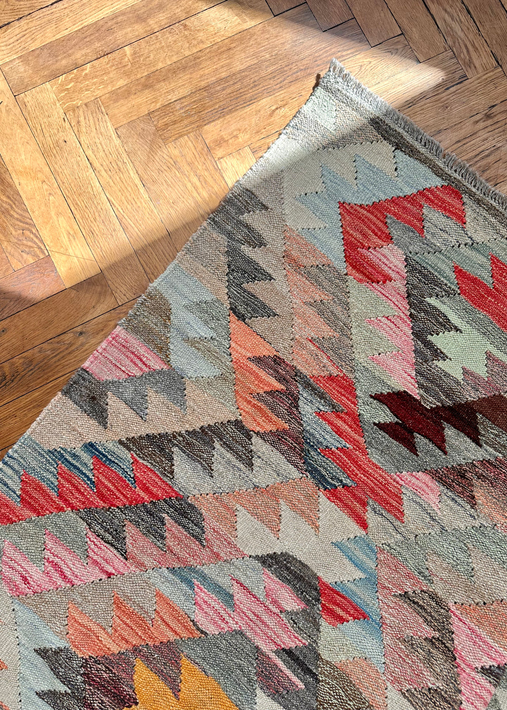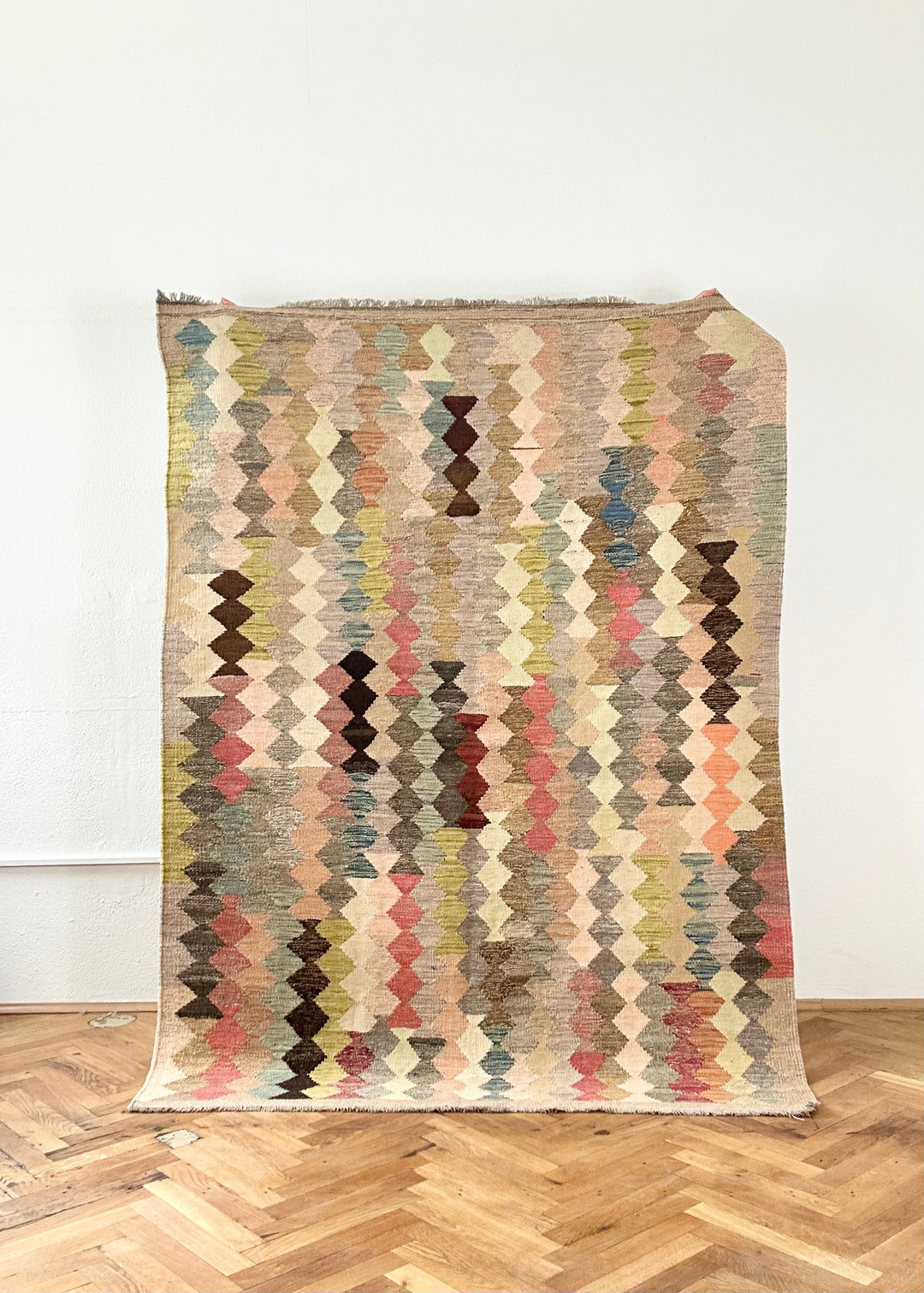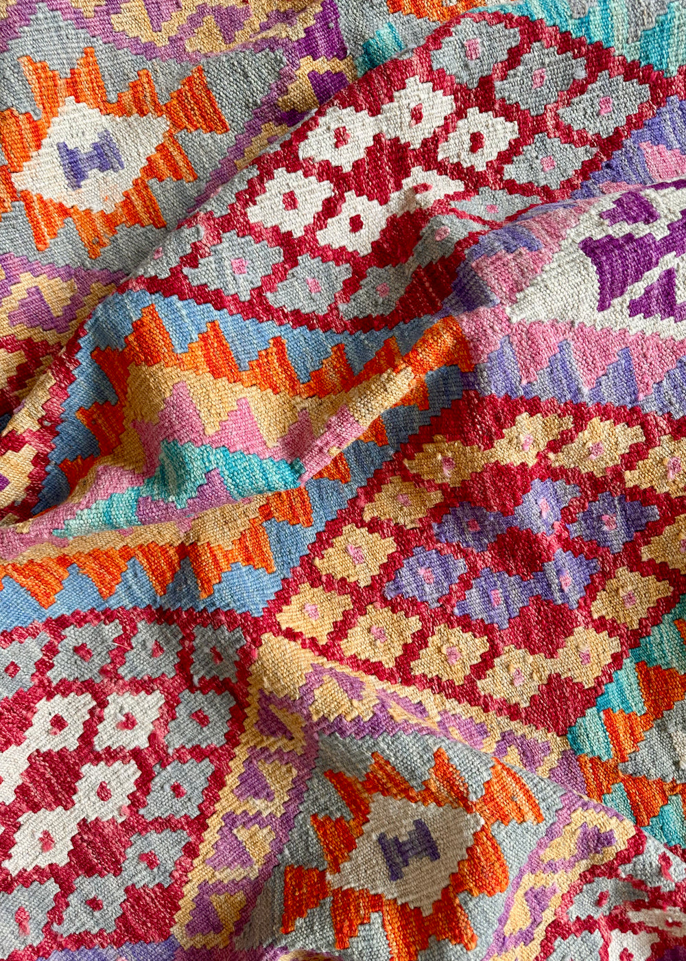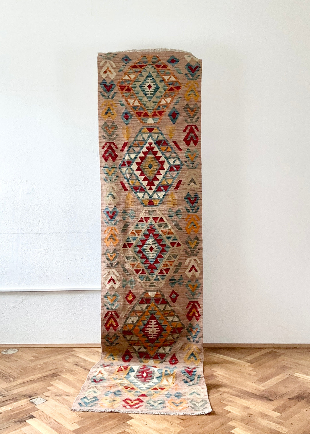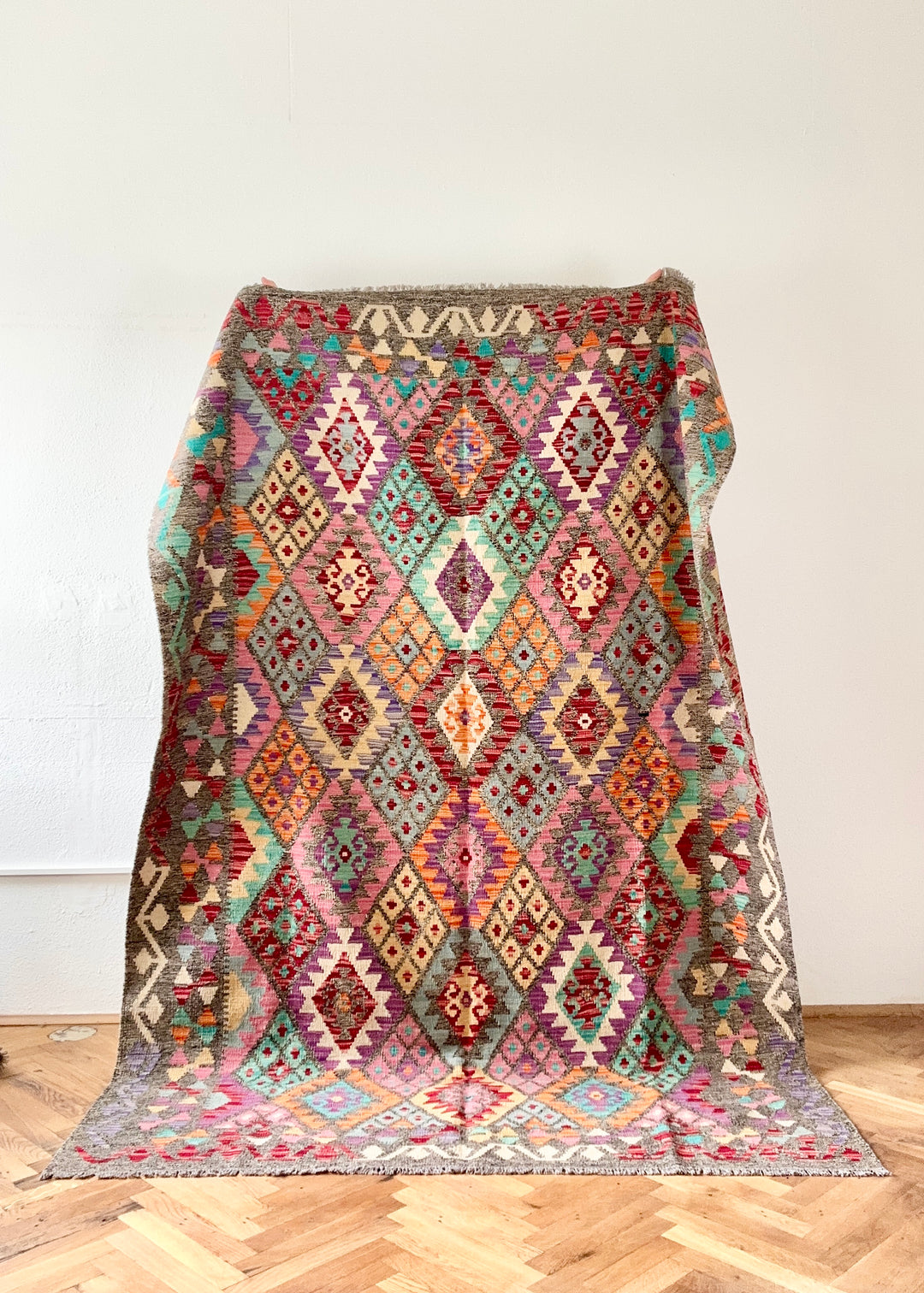 Las alfombras Kilim o Kilim están experimentando actualmente un gran regreso. La versatilidad y combinabilidad de los kilims con los estilos de vida modernos garantizan que este tipo de alfombra atraiga a muchos gustos. Algunas de las alfombras kilim son muy coloridas y varían en color desde rojo, naranja, marrón, azul, verde o turquesa. Otras alfombras de estilo kilim son más discretas en negro, gris, marrón o beige. Los kilims combinan patrones y materiales clásicos con muebles modernos. Este tipo de alfombra es atemporal y moderna. El kilim tiene una larga tradición en Oriente y originalmente fue fabricado para el uso personal de los nómadas. De este modo, cada uno de nuestros kilims transporta una pieza de artesanía tradicional a través de Berlín directamente a un nuevo hogar. Una alfombra kilim puede transformar una habitación. Un kilim se puede utilizar como elemento de diseño en relación con la arquitectura u otro diseño de interiores. Un juego de forma y color, que ofrece puntos de contacto de diseño en muchos aspectos, caracteriza las alfombras Kelim. Mientras que los patrones geométricos en un kilim, por ejemplo, pueden retomar elementos de construcción modernos, una alfombra de color mar de turquesa y naranja puede crear acentos maravillosos entre el hormigón expuesto en gris. La artesanía era y es moderna y encuentra una expresión tradicional en un kilim de The Knots de Berlín, la combinación de vintage y futuro. Con un kilim, cualquier salón, ya sea en Berlín o en cualquier otro lugar, se puede transformar en un pequeño oasis de Oriente.