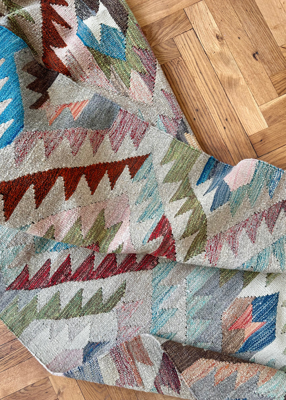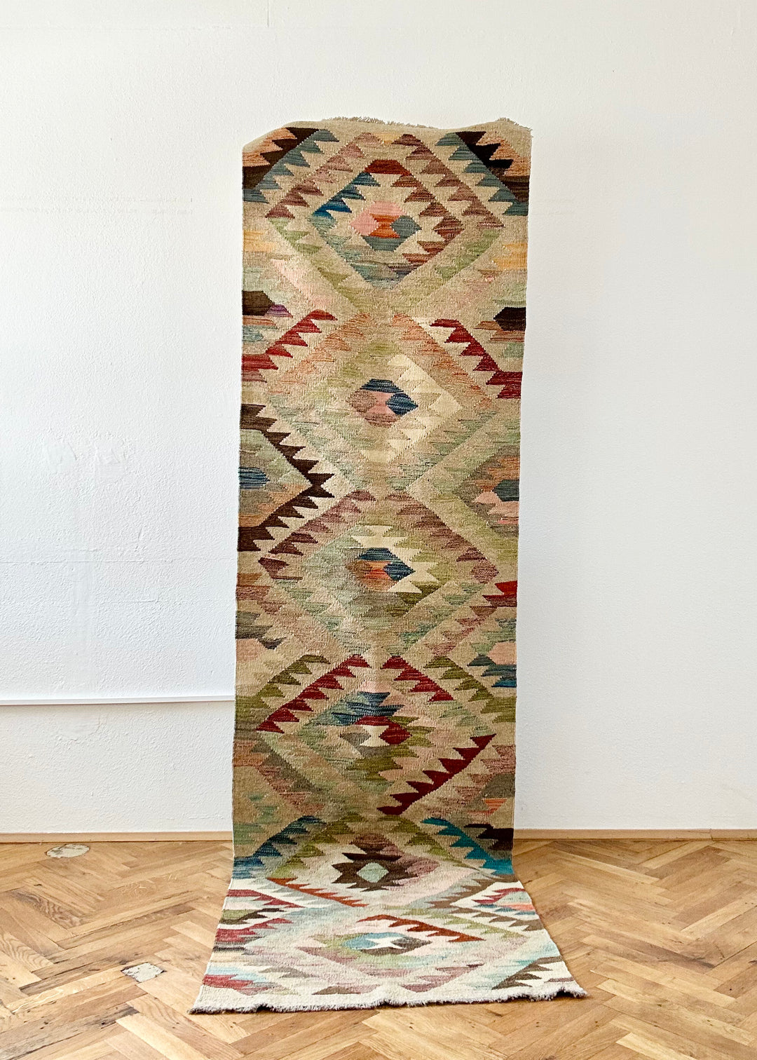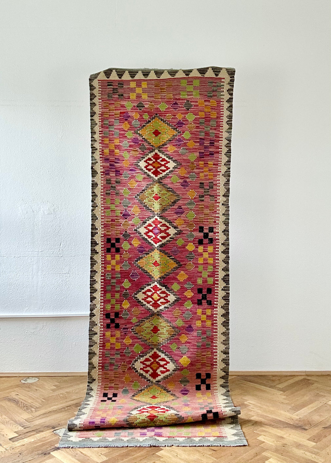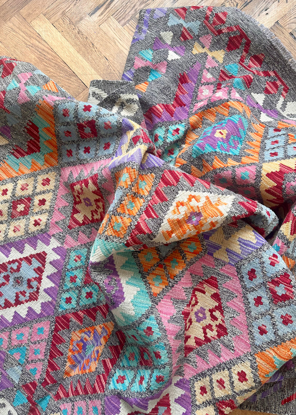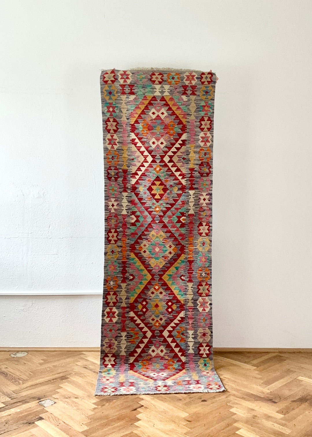 Las alfombras Kilim o Kilim están experimentando actualmente un gran regreso. La versatilidad y combinabilidad de los kilims con los estilos de vida modernos garantizan que este tipo de alfombra atraiga a muchos gustos. Algunas de las alfombras kilim son muy coloridas y varían en color desde rojo, naranja, marrón, azul, verde o turquesa. Otras alfombras de estilo kilim son más discretas en negro, gris, marrón o beige. Los kilims combinan patrones y materiales clásicos con muebles modernos. Este tipo de alfombra es atemporal y moderna. El kilim tiene una larga tradición en Oriente y originalmente fue fabricado para el uso personal de los nómadas. De este modo, cada uno de nuestros kilims transporta una pieza de artesanía tradicional a través de Berlín directamente a un nuevo hogar. Una alfombra kilim puede transformar una habitación. Un kilim se puede utilizar como elemento de diseño en relación con la arquitectura u otro diseño de interiores. Un juego de forma y color, que ofrece puntos de contacto de diseño en muchos aspectos, caracteriza las alfombras Kelim. Mientras que los patrones geométricos en un kilim, por ejemplo, pueden retomar elementos de construcción modernos, una alfombra de color mar de turquesa y naranja puede crear acentos maravillosos entre el hormigón expuesto en gris. La artesanía era y es moderna y encuentra una expresión tradicional en un kilim de The Knots de Berlín, la combinación de vintage y futuro. Con un kilim, cualquier salón, ya sea en Berlín o en cualquier otro lugar, se puede transformar en un pequeño oasis de Oriente.