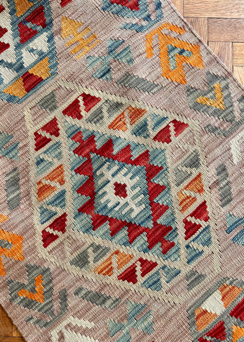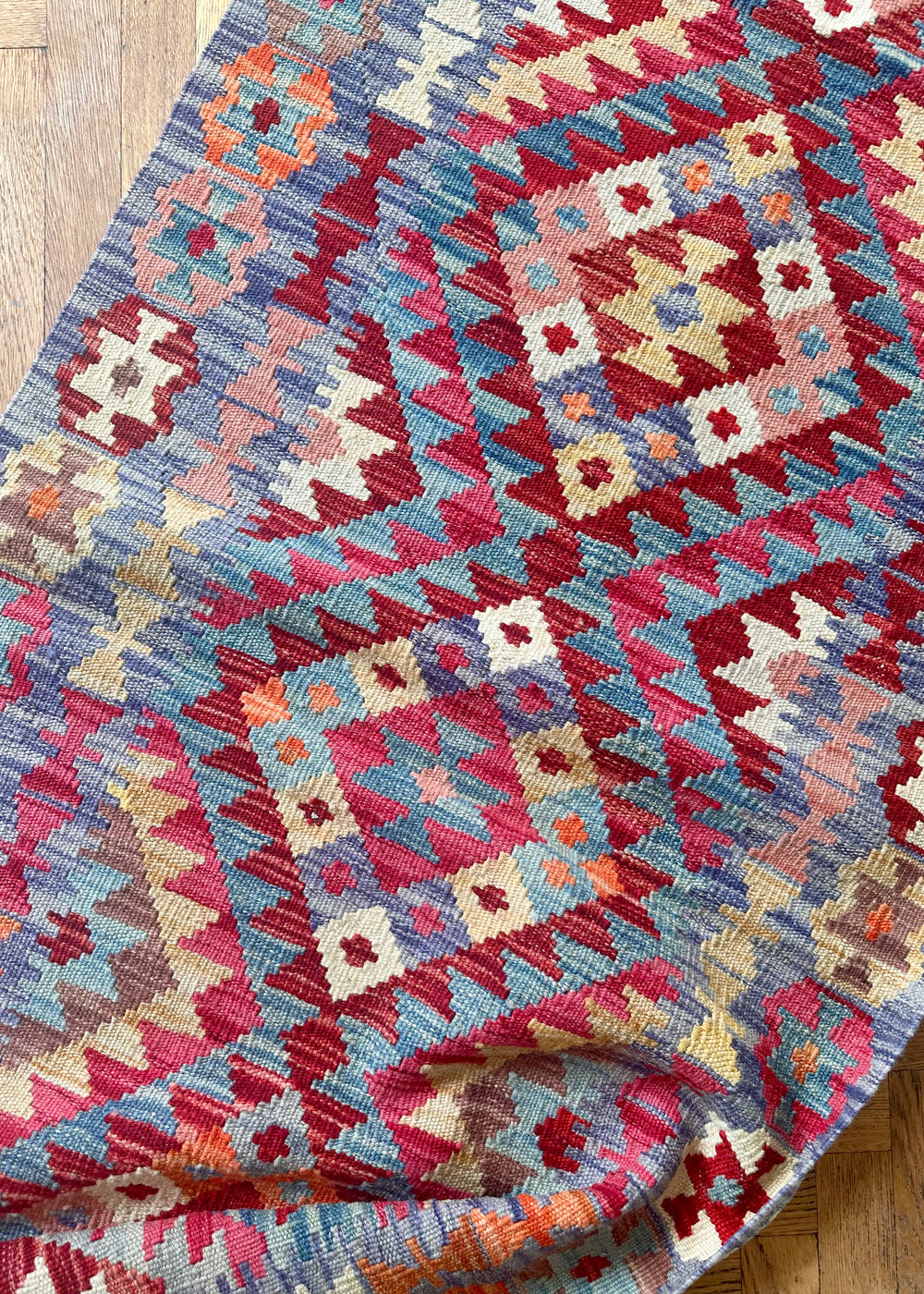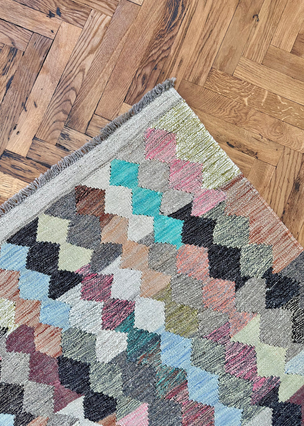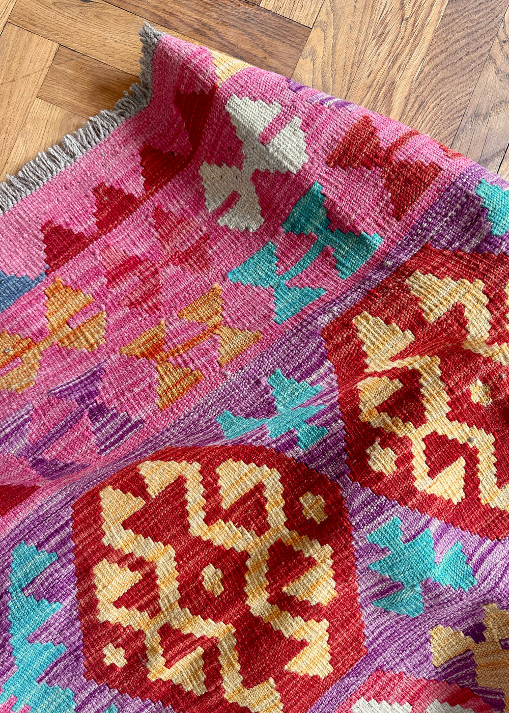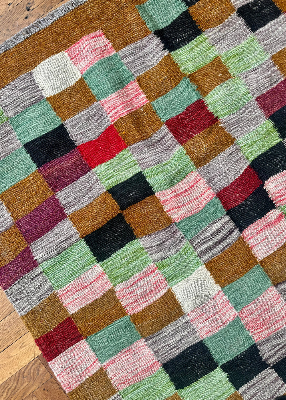 Las alfombras Kilim o Kilim están experimentando actualmente un gran regreso. La versatilidad y combinabilidad de los kilims con los estilos de vida modernos garantizan que este tipo de alfombra atraiga a muchos gustos. Algunas de las alfombras kilim son muy coloridas y varían en color desde rojo, naranja, marrón, azul, verde o turquesa. Otras alfombras de estilo kilim son más discretas en negro, gris, marrón o beige. Los kilims combinan patrones y materiales clásicos con muebles modernos. Este tipo de alfombra es atemporal y moderna. El kilim tiene una larga tradición en Oriente y originalmente fue fabricado para el uso personal de los nómadas. De este modo, cada uno de nuestros kilims transporta una pieza de artesanía tradicional a través de Berlín directamente a un nuevo hogar. Una alfombra kilim puede transformar una habitación. Un kilim se puede utilizar como elemento de diseño en relación con la arquitectura u otro diseño de interiores. Un juego de forma y color, que ofrece puntos de contacto de diseño en muchos aspectos, caracteriza las alfombras Kelim. Mientras que los patrones geométricos en un kilim, por ejemplo, pueden retomar elementos de construcción modernos, una alfombra de color mar de turquesa y naranja puede crear acentos maravillosos entre el hormigón expuesto en gris. La artesanía era y es moderna y encuentra una expresión tradicional en un kilim de The Knots de Berlín, la combinación de vintage y futuro. Con un kilim, cualquier salón, ya sea en Berlín o en cualquier otro lugar, se puede transformar en un pequeño oasis de Oriente.