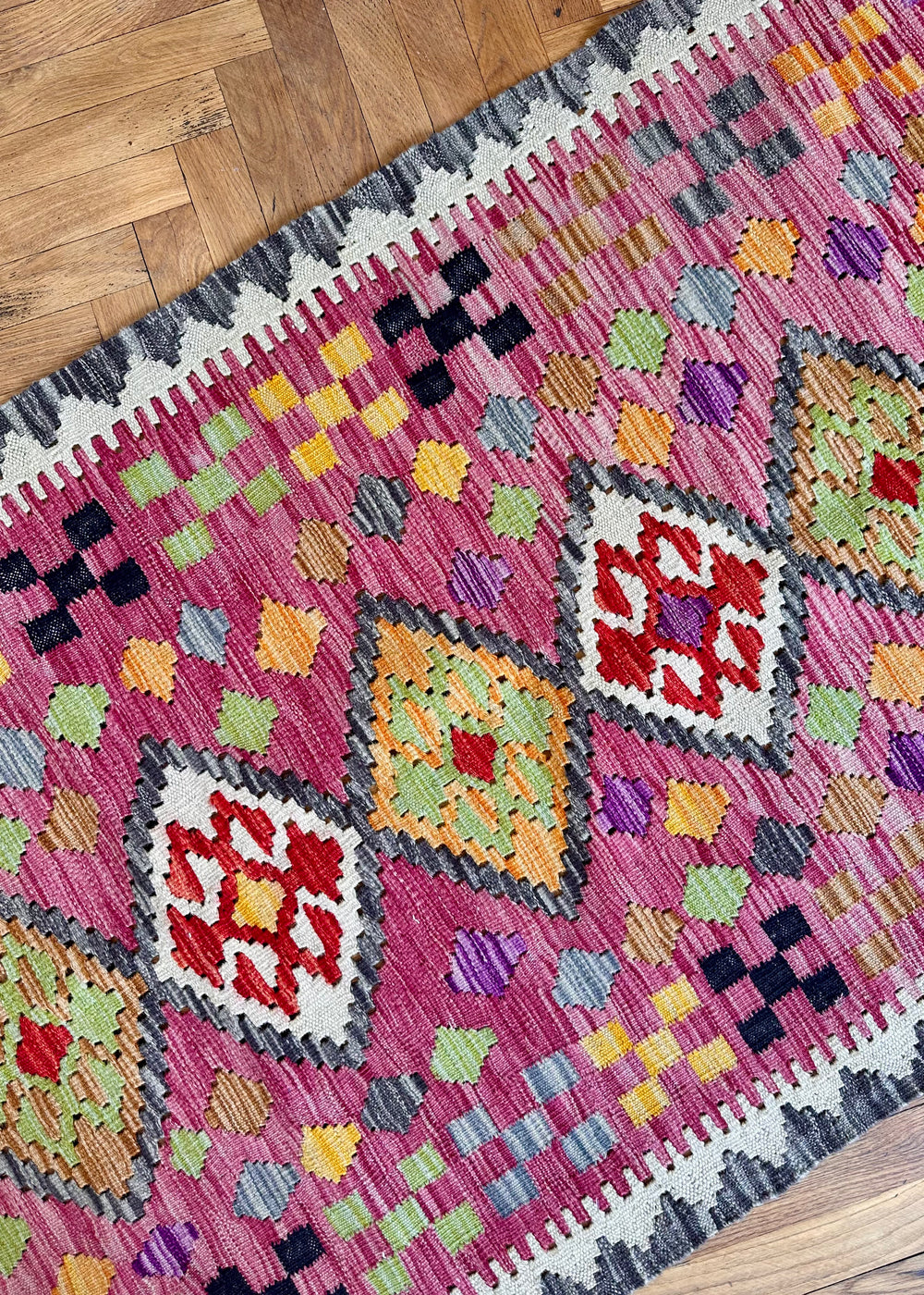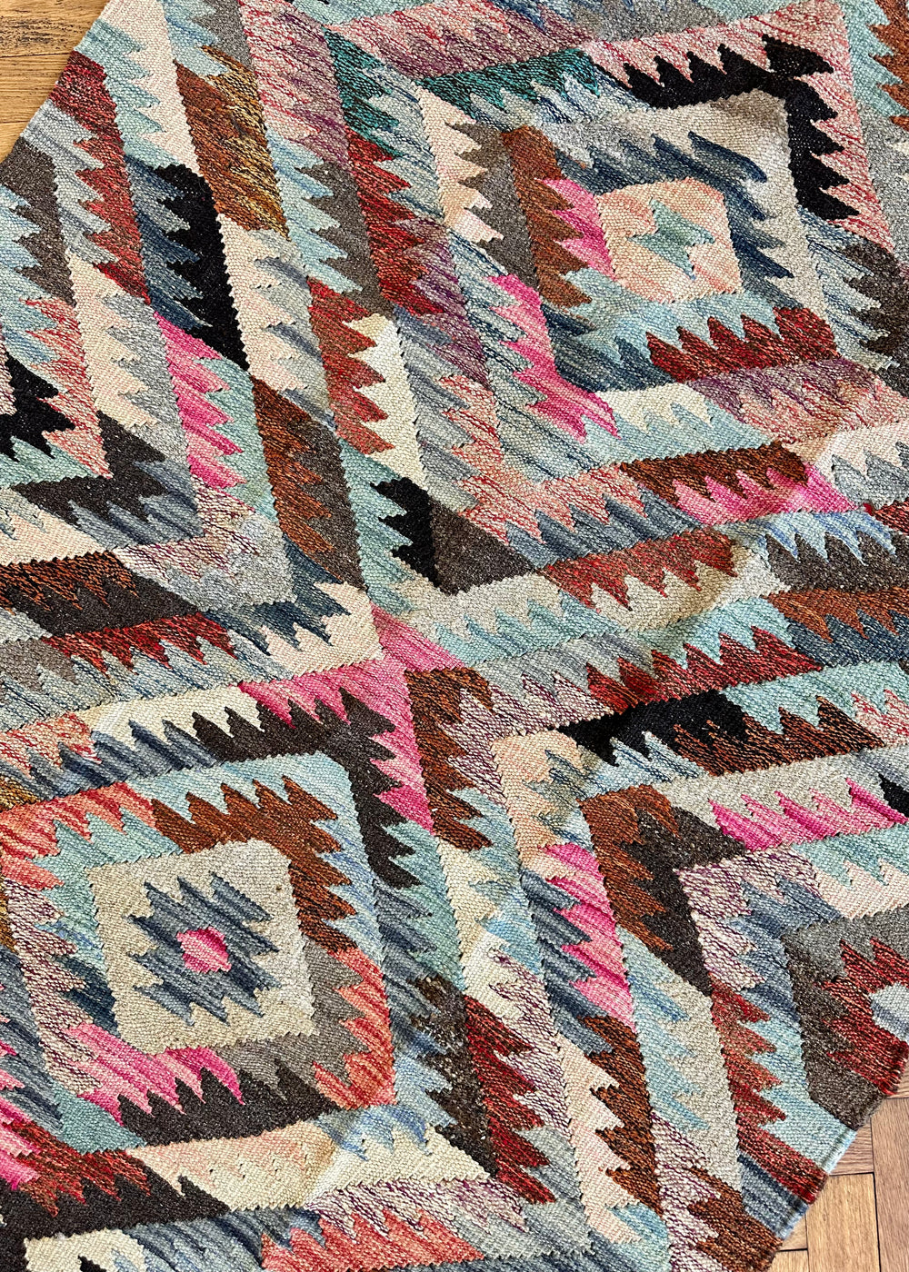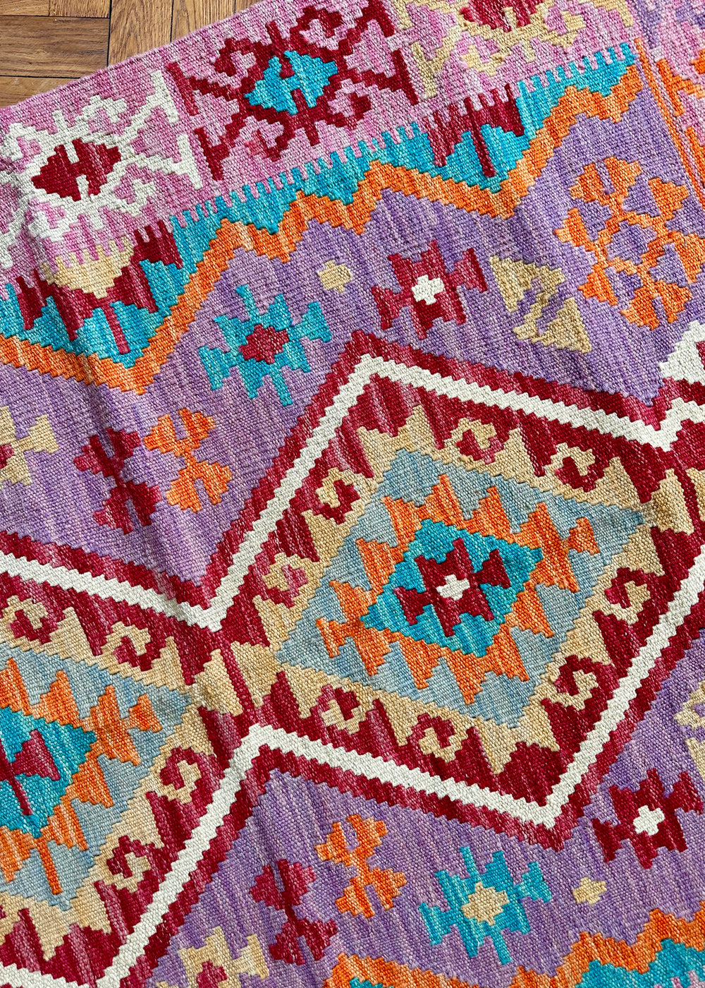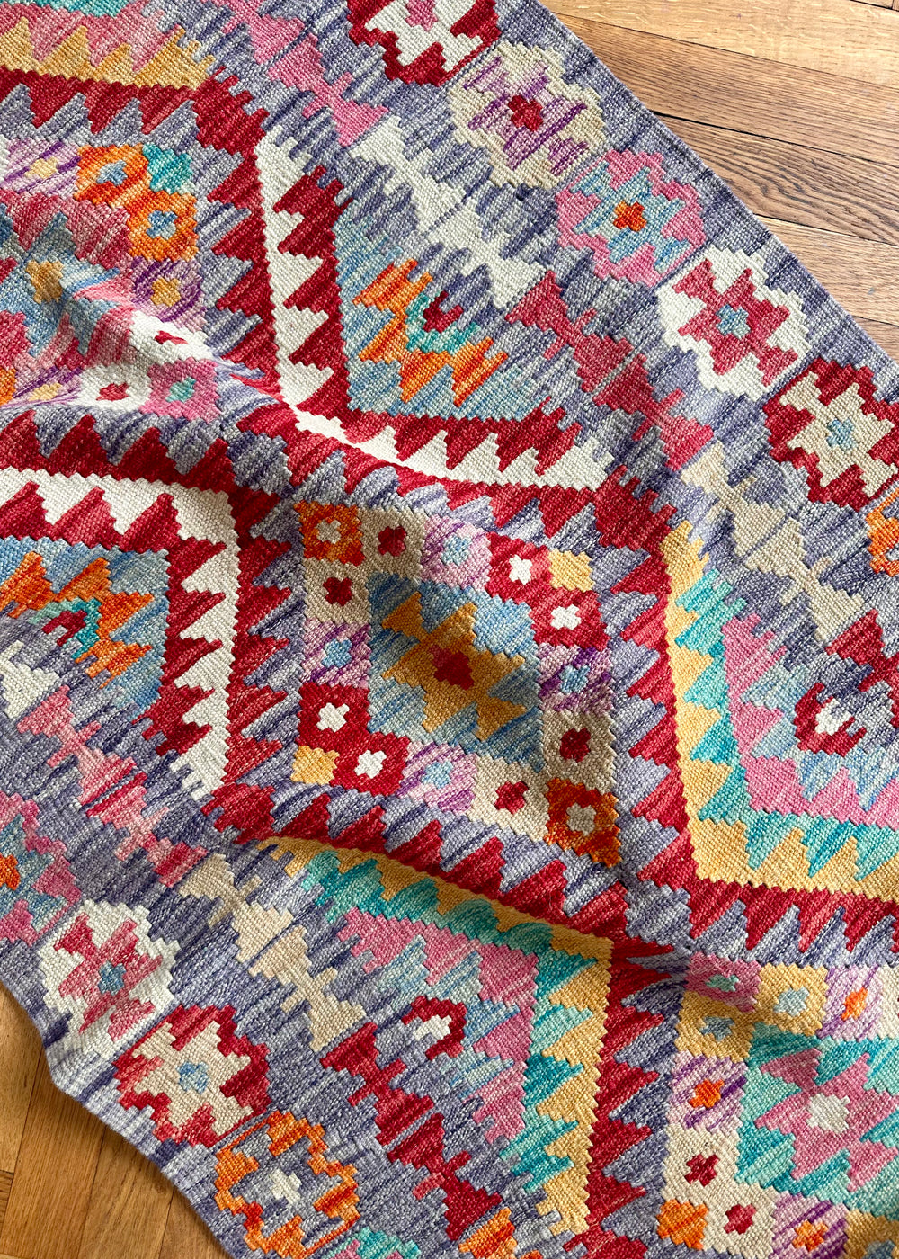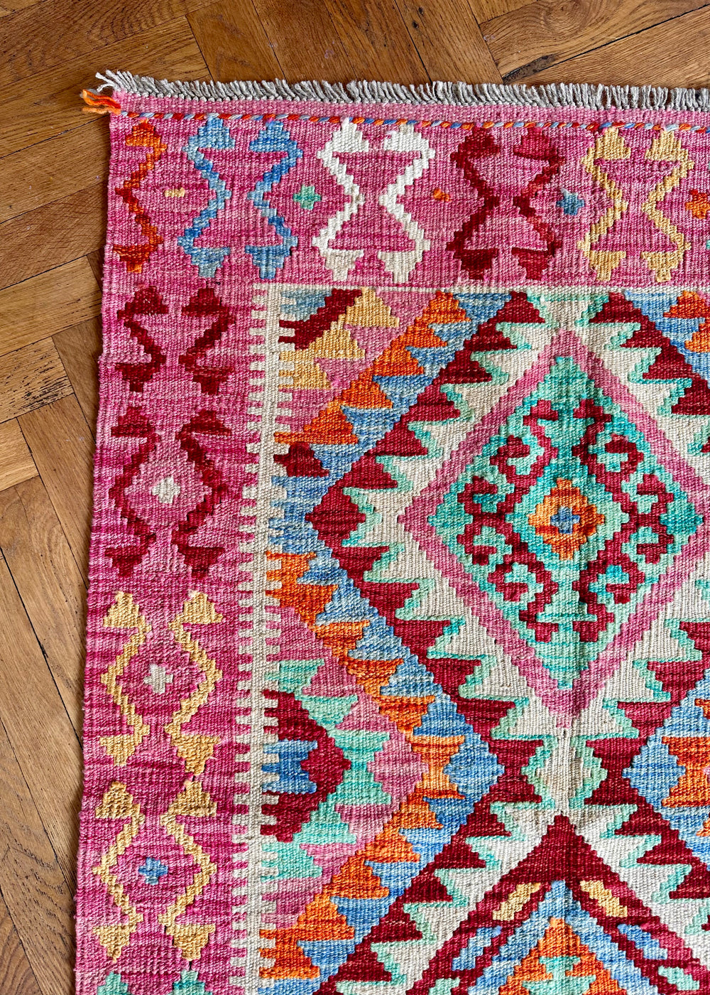 Las alfombras Kilim o Kilim están experimentando actualmente un gran regreso. La versatilidad y combinabilidad de los kilims con los estilos de vida modernos garantizan que este tipo de alfombra atraiga a muchos gustos. Algunas de las alfombras kilim son muy coloridas y varían en color desde rojo, naranja, marrón, azul, verde o turquesa. Otras alfombras de estilo kilim son más discretas en negro, gris, marrón o beige. Los kilims combinan patrones y materiales clásicos con muebles modernos. Este tipo de alfombra es atemporal y moderna. El kilim tiene una larga tradición en Oriente y originalmente fue fabricado para el uso personal de los nómadas. De este modo, cada uno de nuestros kilims transporta una pieza de artesanía tradicional a través de Berlín directamente a un nuevo hogar. Una alfombra kilim puede transformar una habitación. Un kilim se puede utilizar como elemento de diseño en relación con la arquitectura u otro diseño de interiores. Un juego de forma y color, que ofrece puntos de contacto de diseño en muchos aspectos, caracteriza las alfombras Kelim. Mientras que los patrones geométricos en un kilim, por ejemplo, pueden retomar elementos de construcción modernos, una alfombra de color mar de turquesa y naranja puede crear acentos maravillosos entre el hormigón expuesto en gris. La artesanía era y es moderna y encuentra una expresión tradicional en un kilim de The Knots de Berlín, la combinación de vintage y futuro. Con un kilim, cualquier salón, ya sea en Berlín o en cualquier otro lugar, se puede transformar en un pequeño oasis de Oriente.